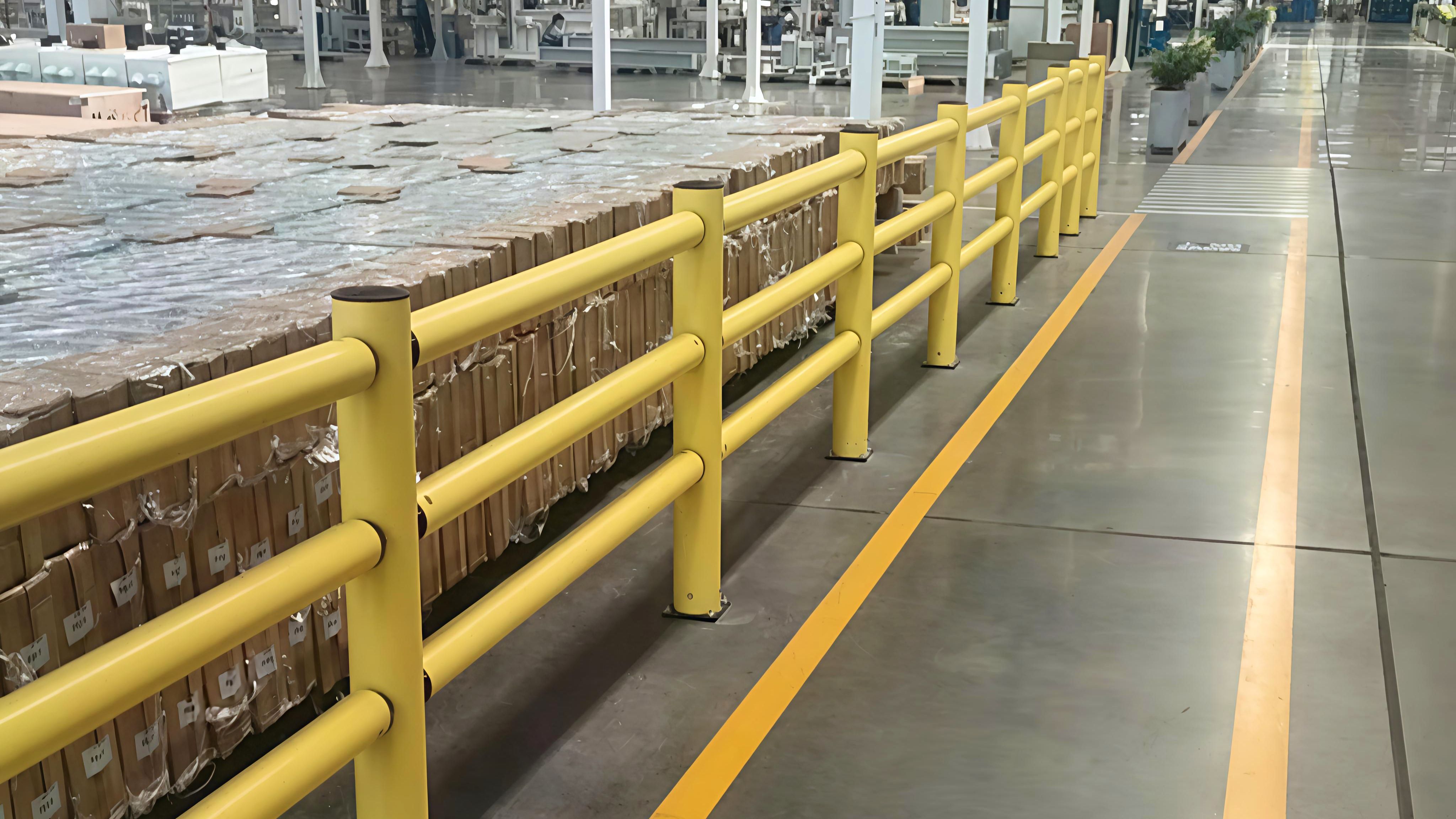 Yellow guardrail design with customizable height can promptly remind forklift operators to pay attention to their surroundings and prevent collisions due to driver fatigue or inattention.