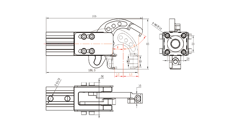 Application:Vertical-type clamp, suitable for blank 90 °flanging; appropriate clear space should be reserved for the downward movement after the clamp arm is opened