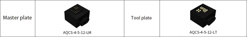 The quick change function module provides a pathway for the robot's execution tools to use media such as power, communication, compressed air, and hydraulic, enabling synchronous connection of the supporting power, communication, compressed air, and hydraulic components during quick connection of the quick change main body. The following are the adaptation modules for AQC-20 robot tool quick change products: