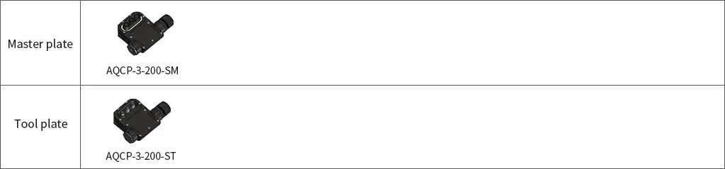 The quick-change function module provides access to media such as electricity, communications, compressed air, and hydraulic pressure for the robot execution tool, enabling simultaneous connection of supporting media when the main part of the quick-change is quickly connected. The following are the adaptation modules for AQCB-630 robot tool quick change products: