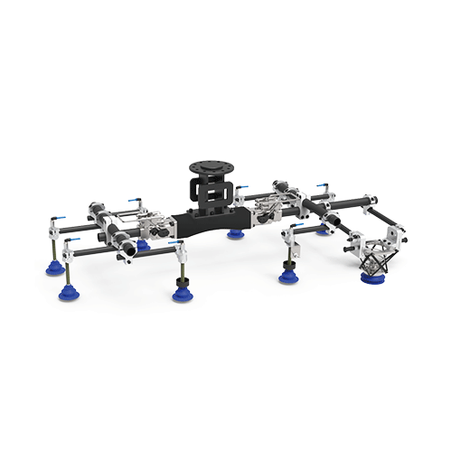 Using vacuum gripping system, the tooling picks blanks individually from trolley and transfers them to the next process step.